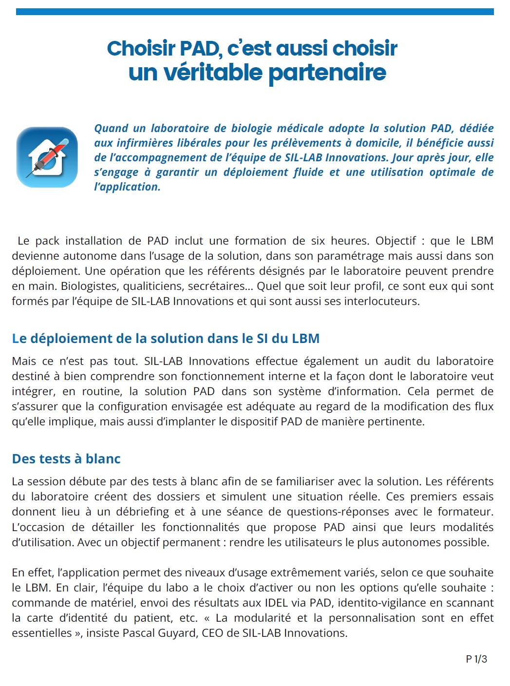 P-A-D : Gain de temps pour l'infirmier et le LBM
